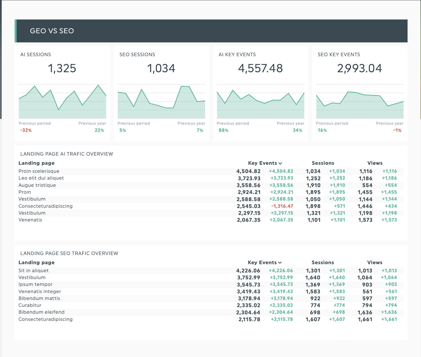 Während unsere KI-Berichtsvorlage den Datenverkehr von KI-Tools verfolgt, konzentriert sich dieser Leitfaden darauf, KI als Wettbewerbsvorteil zu nutzen, damit du deine Marketingdaten besser analysieren und verstehen kannst, um zukünftigen Trends voraus zu sein und deine Berichtsprozesse zukunftssicher zu machen.