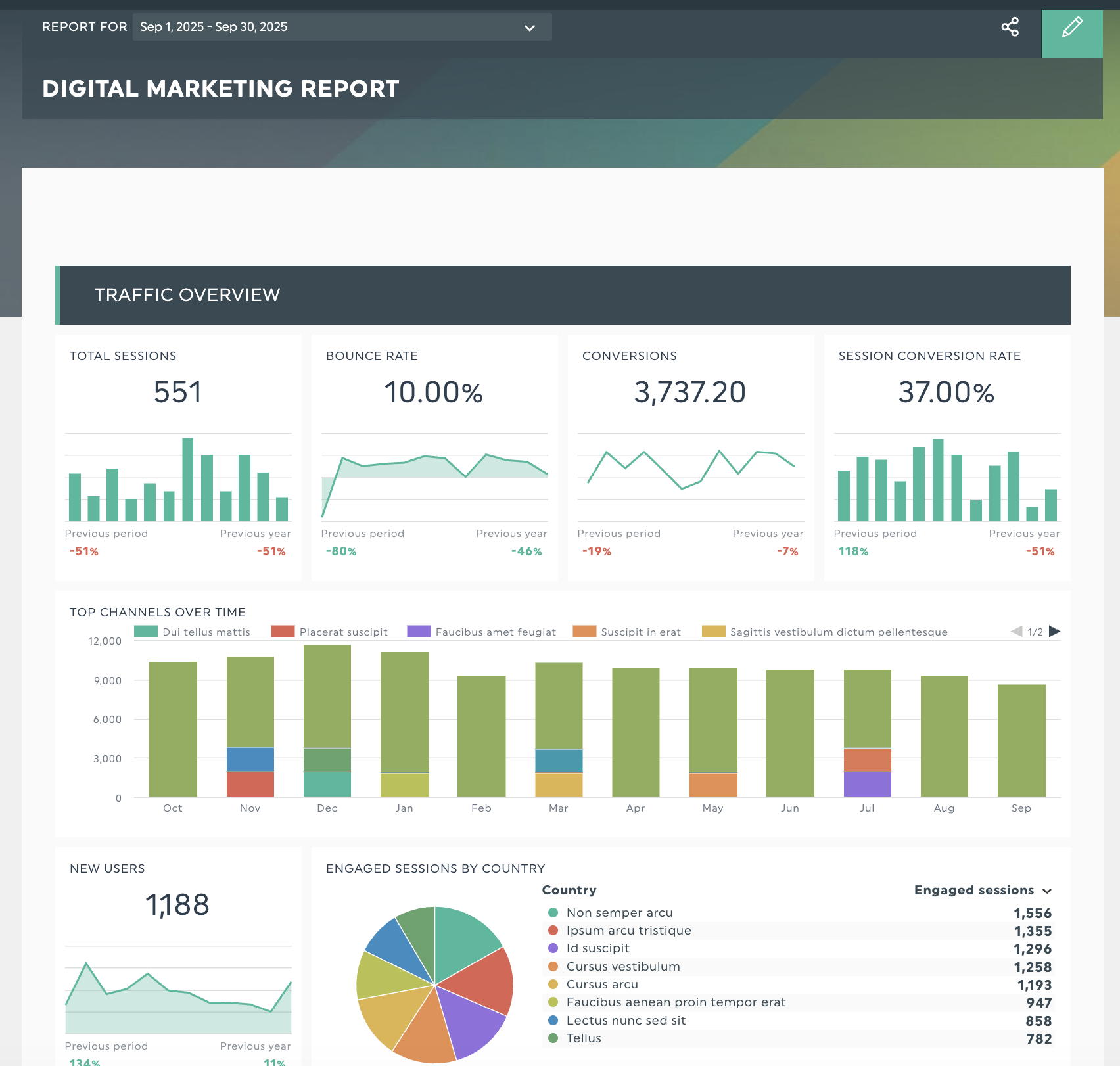 Stelle alle deine Marketingdaten in einem automatisierten Bericht zusammen.