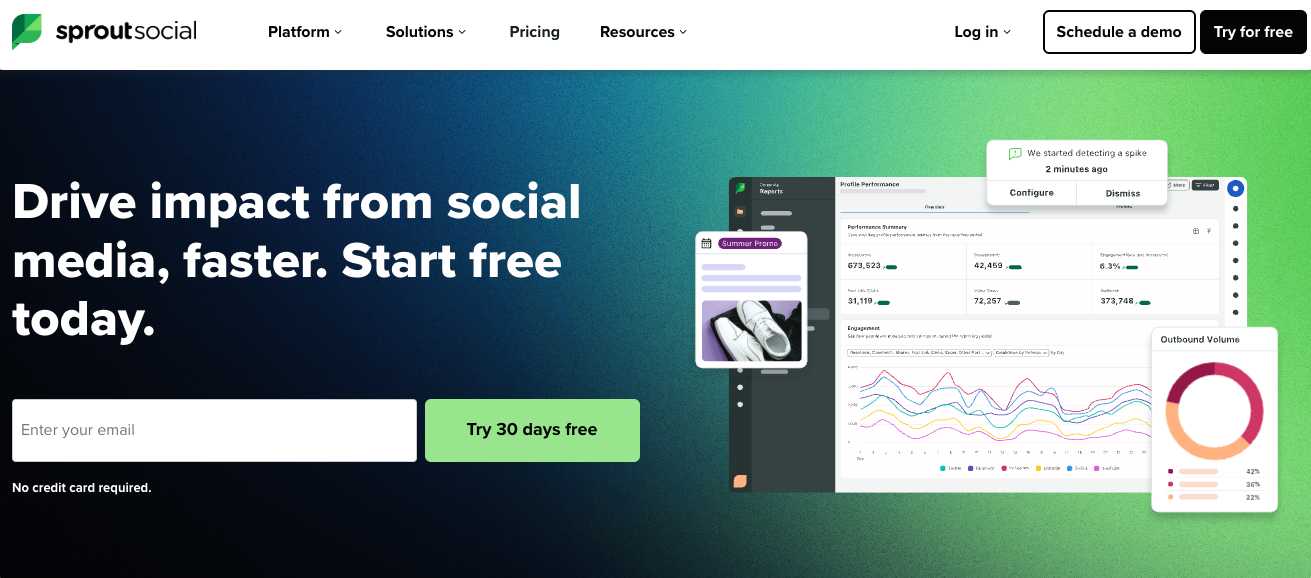 Sprout Social ist eine Plattform für Social-Media-Management, die Veröffentlichung, Interaktion und Analyse in einem Tool vereint. Wenn Social Media ein wichtiger Teil deines Marketing-Mixes ist und du die Performance über mehrere Kanäle hinweg an einem Ort verfolgen musst, ist Sprout Social eine der umfassendsten Optionen auf dem Markt.