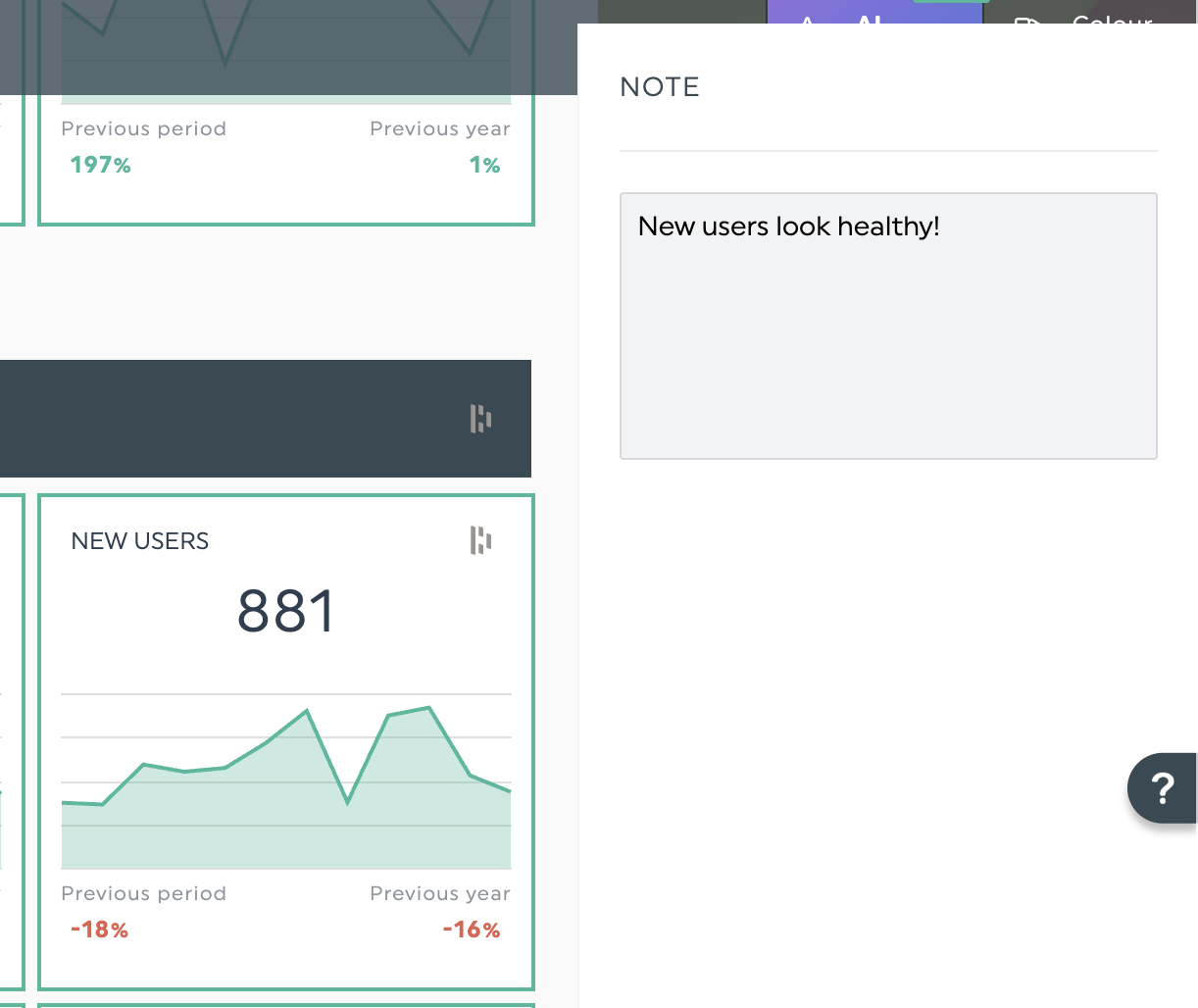 Wenn du Berichte per E-Mail verschickst, füge mit dem Notiz- und Kommentar-Widget von DashThis Erläuterungen hinzu. Diese geben den Empfängern den nötigen Kontext, um deine Zahlen zu verstehen.